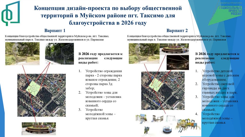 Концепция дизайн-проекта по выбору общественной территорий в Муйском районе пгт. Таксимо для благоустройства в 2026 году