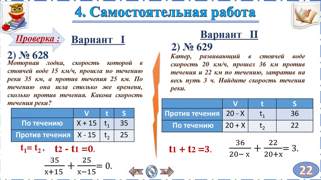 (работа в парах по вариантам)