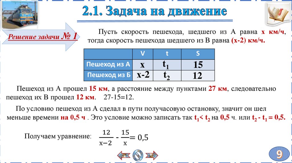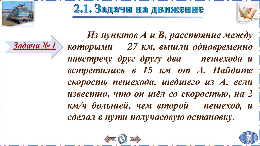 2.1 Задачи на движение. Задача № 1.