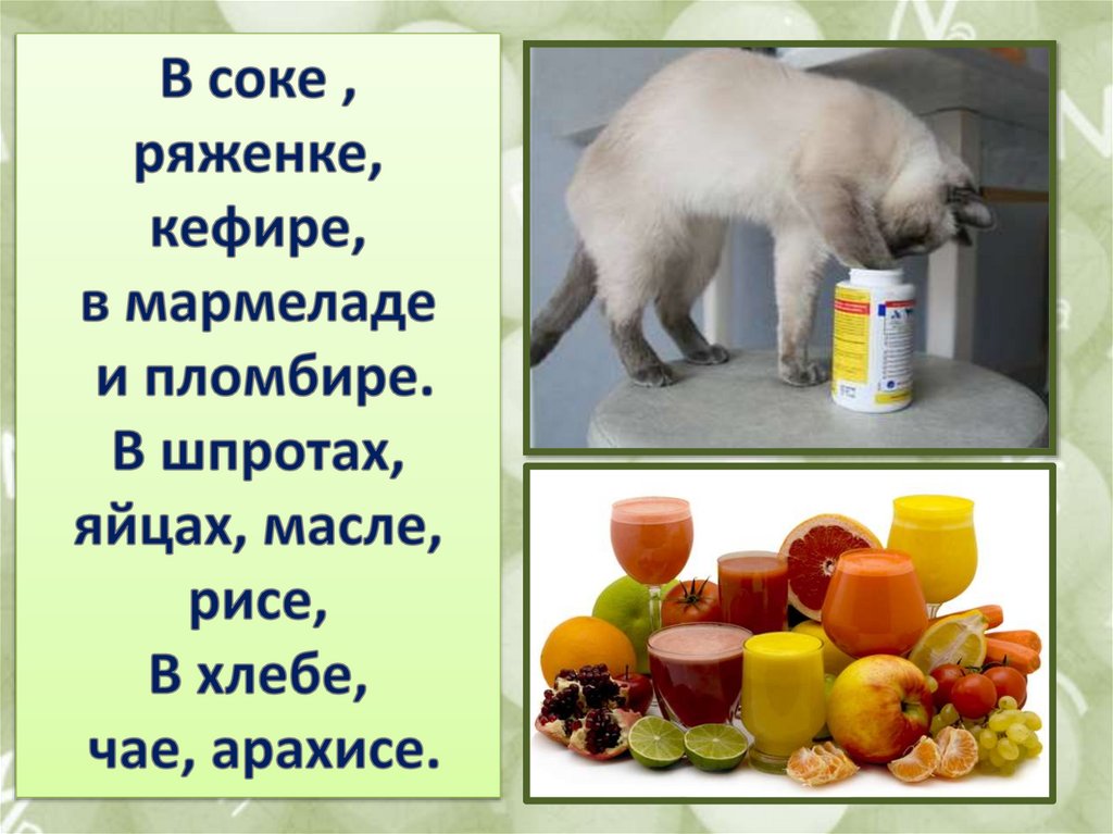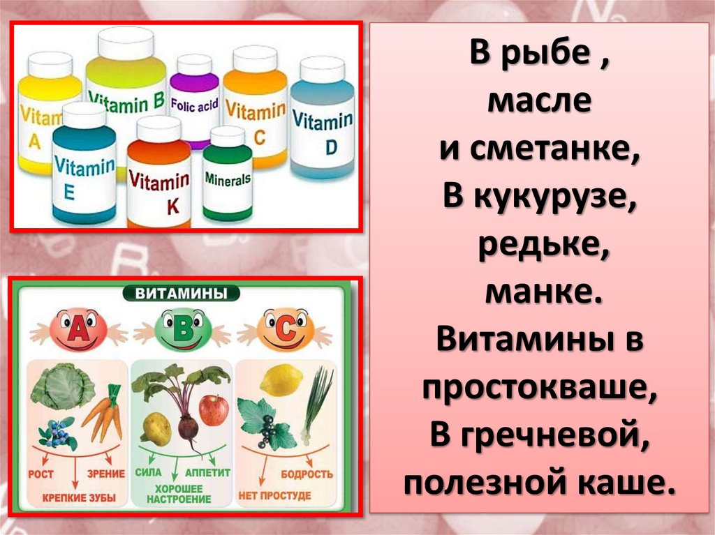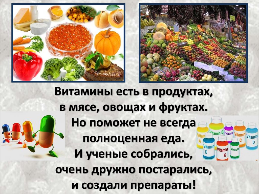 Витамины есть в продуктах,в мясе, овощах и фруктах.