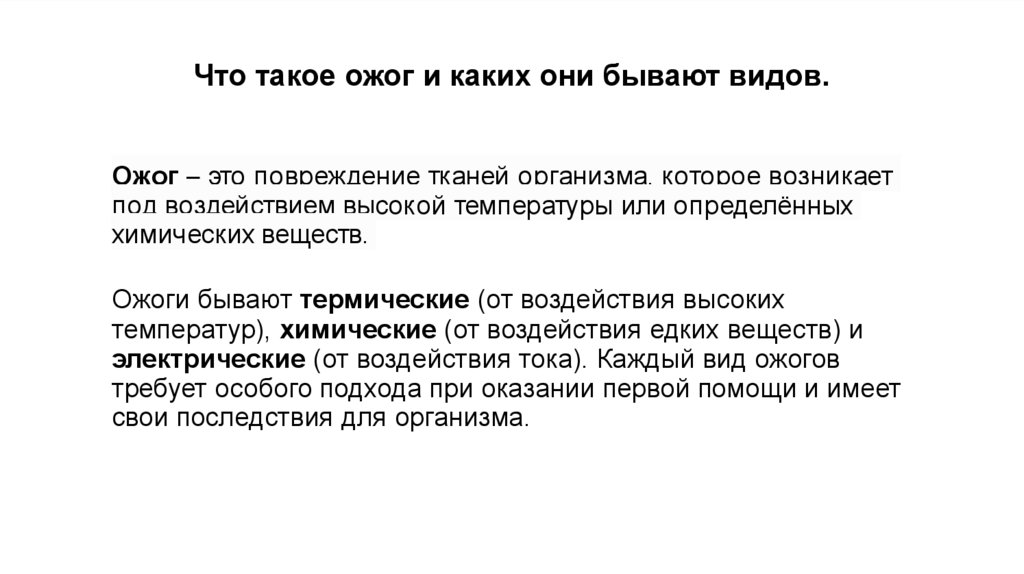 Что такое ожог и каких они бывают видов.Ожог – это повреждение тканей организма, которое возникает