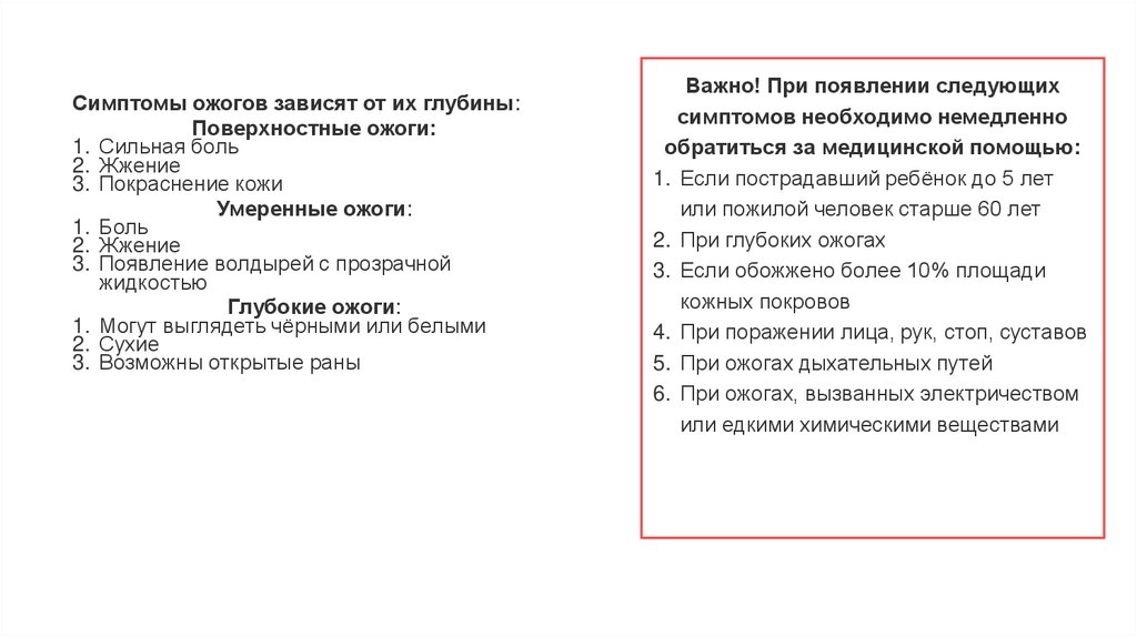 Симптомы ожогов зависят от их глубины:Поверхностные ожоги: