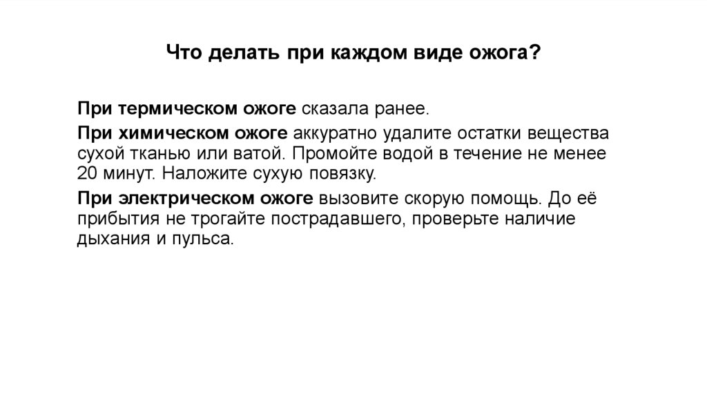 Что делать при каждом виде ожога?При термическом ожоге сказала ранее.