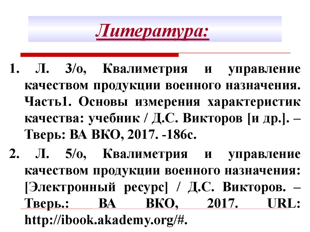 Тема: Области применения квалиметрии