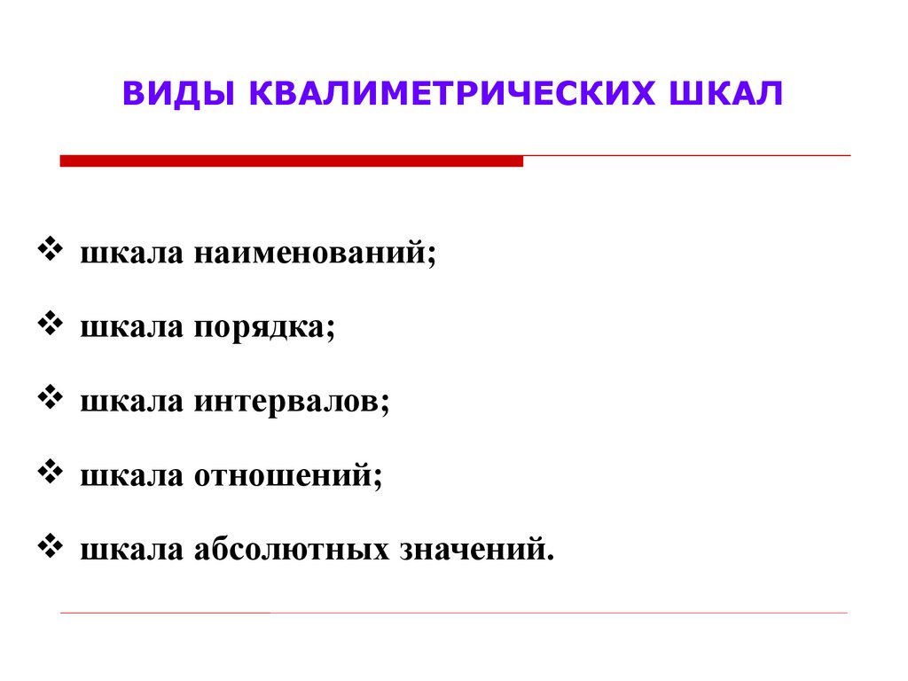 дать систематизированные основы знаний по видам шкал.