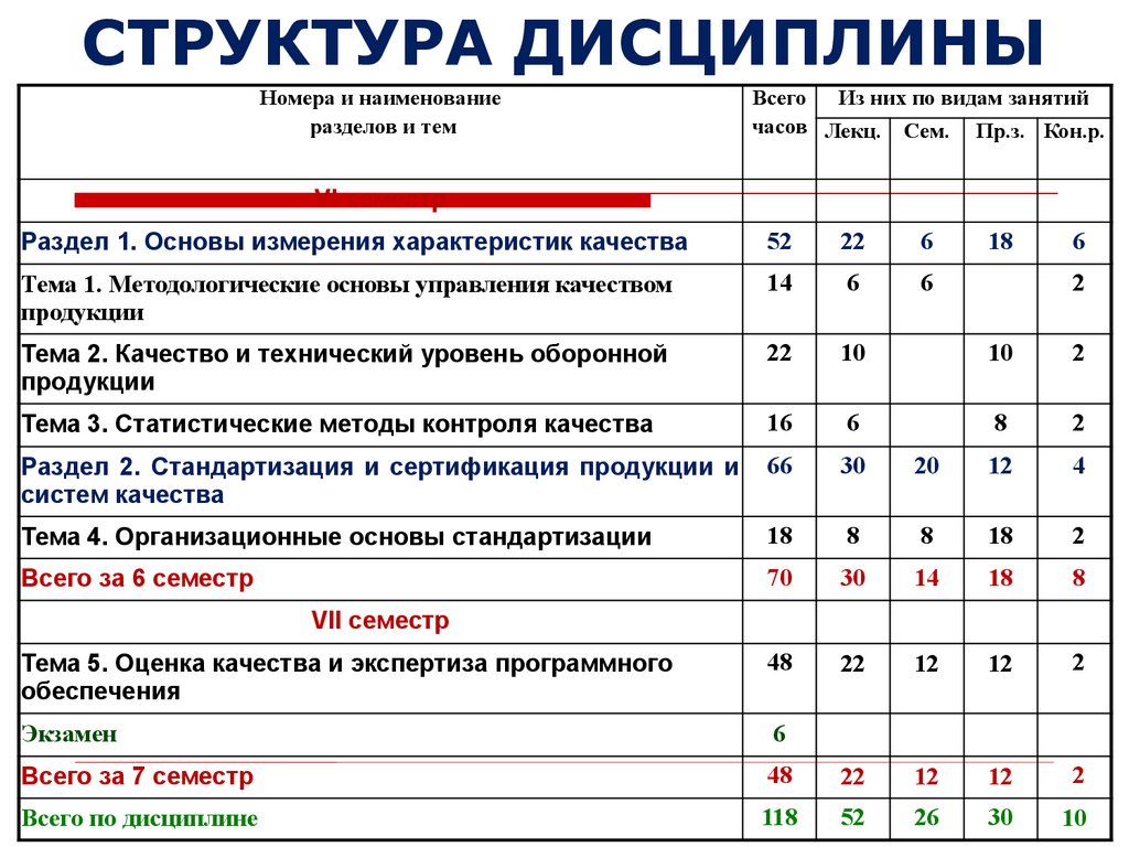 СТРУКТУРА ДИСЦИПЛИНЫНомера и наименование