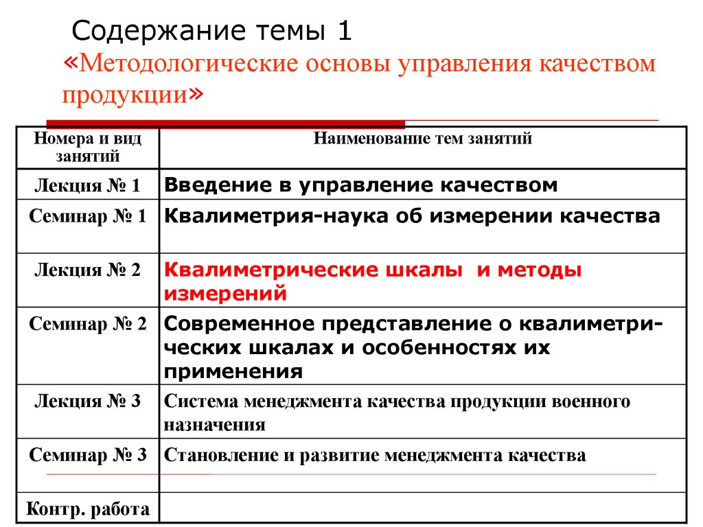 Содержание темы 1«Методологические основы управления качеством
