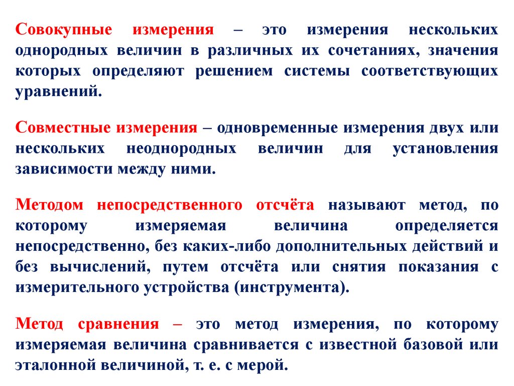 Совокупные измерения – это измерения несколькиходнородных величин в различных их сочетаниях, значения
