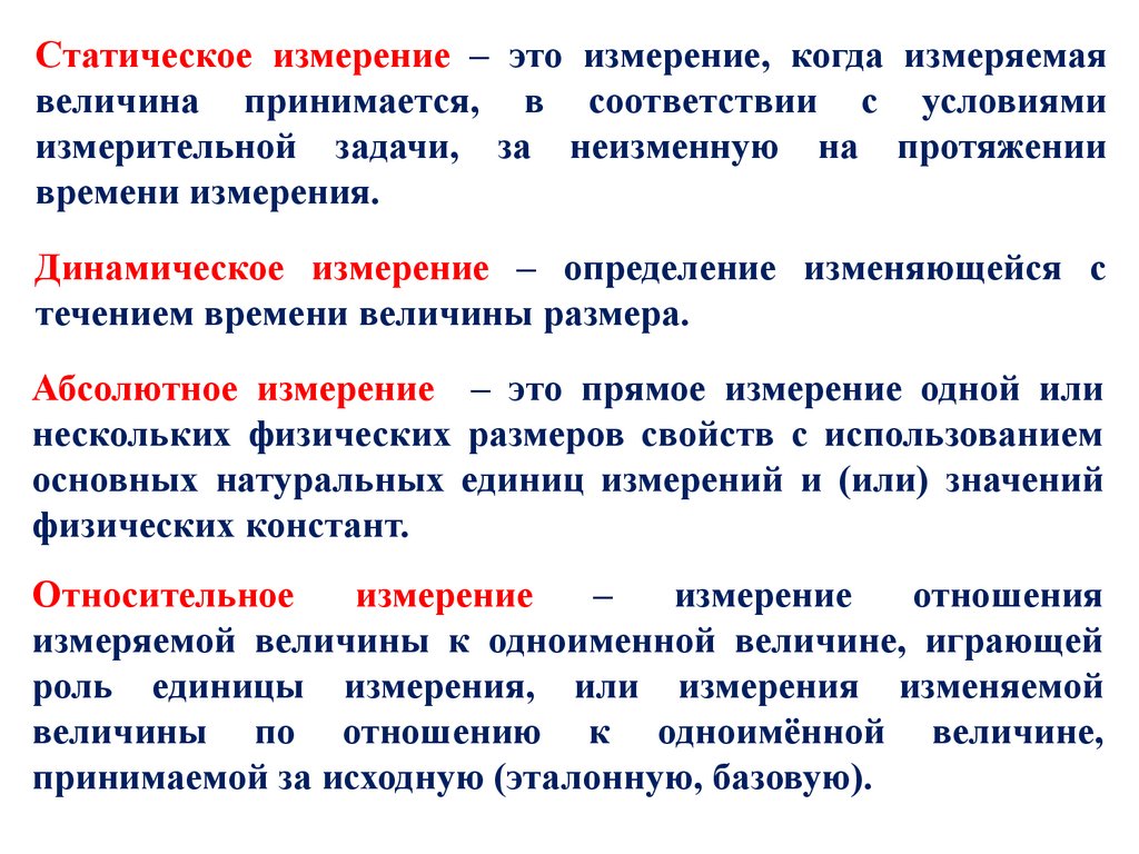Статическое измерение – это измерение, когда измеряемаявеличина принимается, в соответствии с условиями