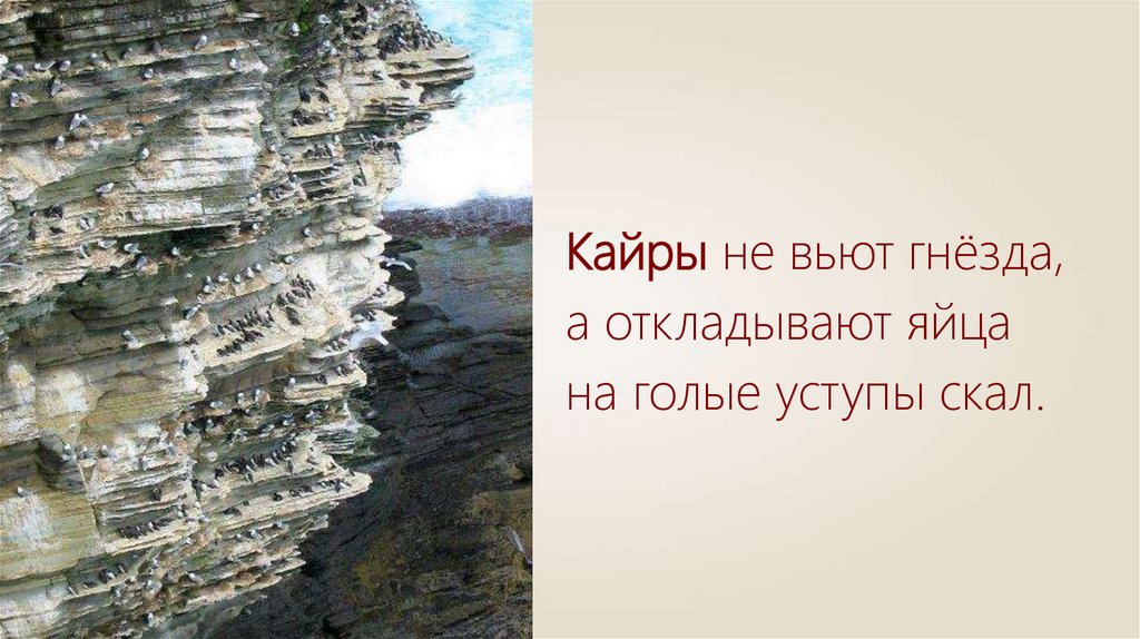 Кайры не вьют гнёзда,а откладывают яйца