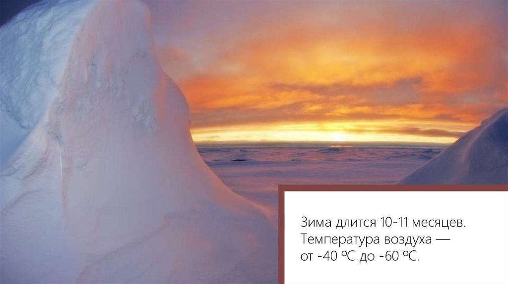 Зима длится 10-11 месяцев.Температура воздуха —