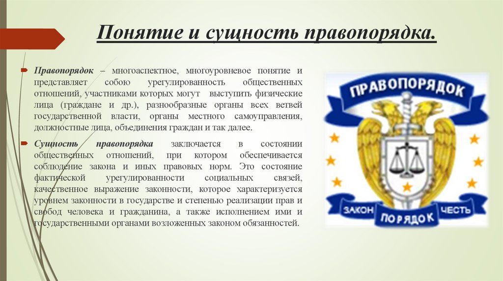 1)Раскрыть сущность понятия «правопорядка», используя метод поиска информации.