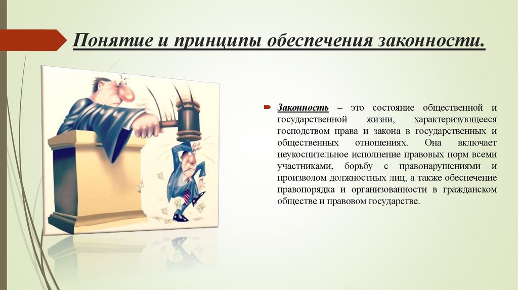 Понятие и принципы обеспечения законности.Законность – это состояние общественной и