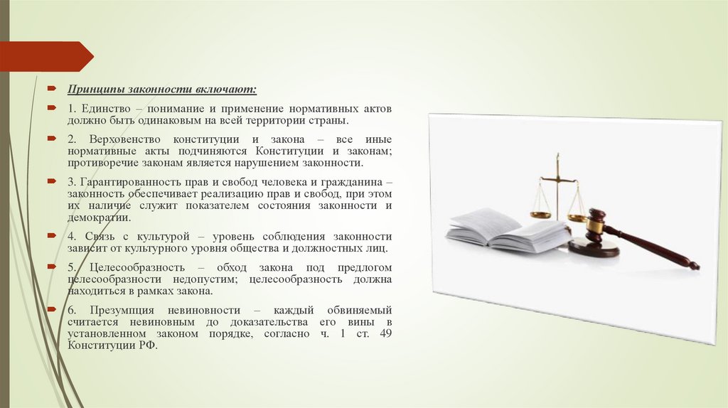 Принципы законности включают:1. Единство – понимание и применение нормативных актов