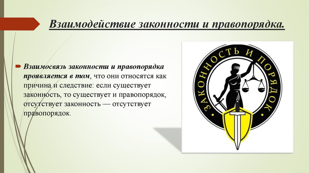 Взаимодействие законности и правопорядка.Взаимосвязь законности и правопорядка