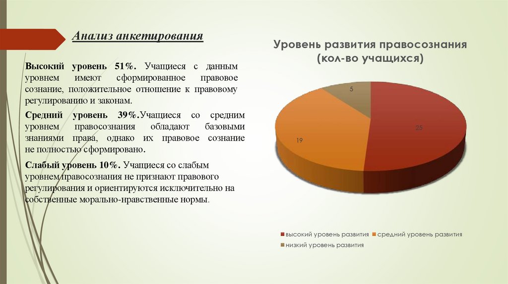 Анализ анкетированияВысокий уровень 51%. Учащиеся с данным