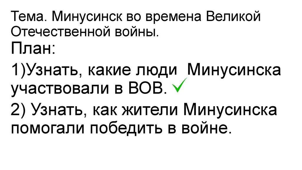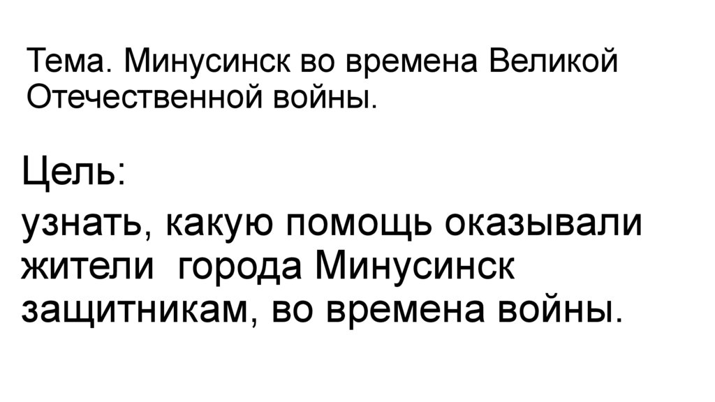 Тема. Минусинск во времена ВеликойОтечественной войны.