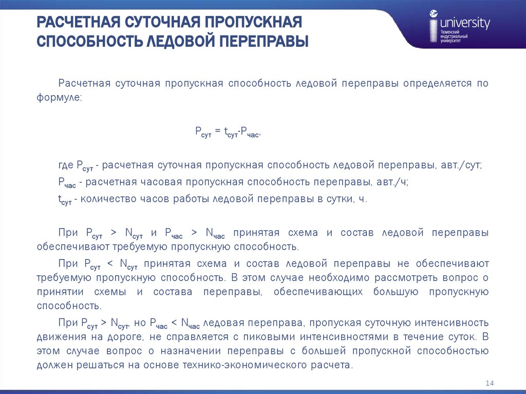 Исходными данными для расчета пропускной способности ледовой переправыявляются: