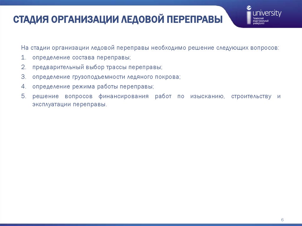 СТАДИЯ ОРГАНИЗАЦИИ ЛЕДОВОЙ ПЕРЕПРАВЫНа стадии организации ледовой переправы необходимо решение следующих вопросов: