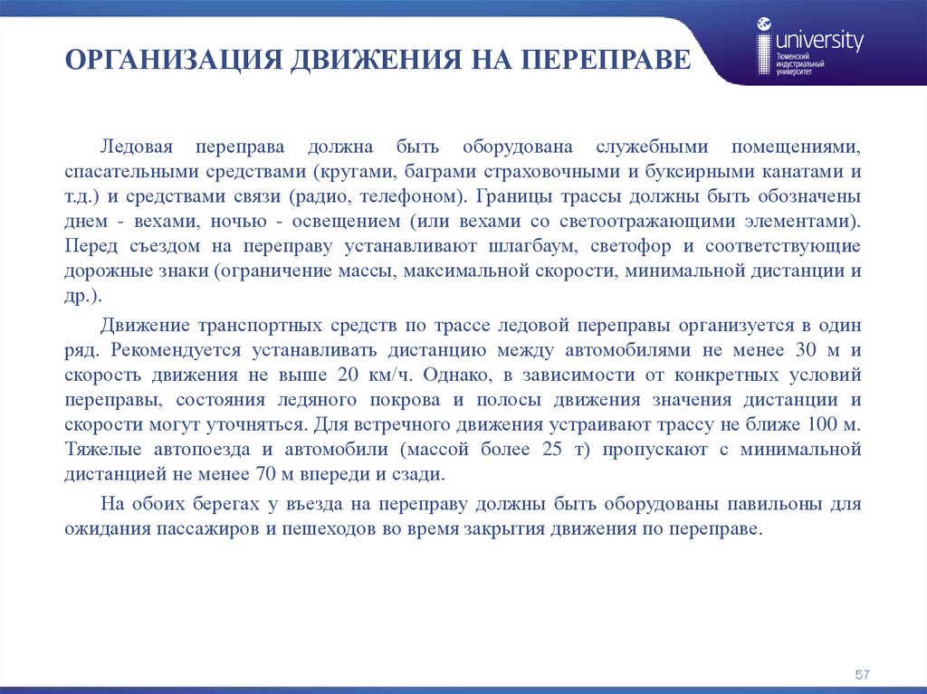 57. ОРГАНИЗАЦИЯ ДВИЖЕНИЯ НА ПЕРЕПРАВЕ