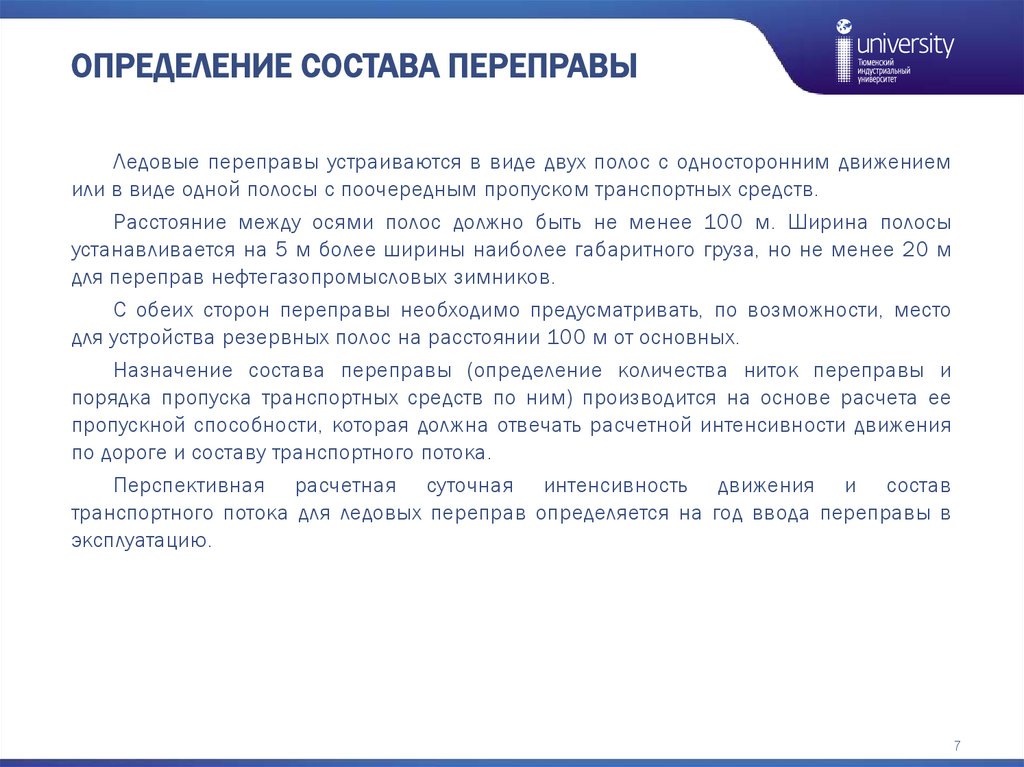 ОПРЕДЕЛЕНИЕ СОСТАВА ПЕРЕПРАВЫЛедовые переправы устраиваются в виде двух полос с односторонним движением