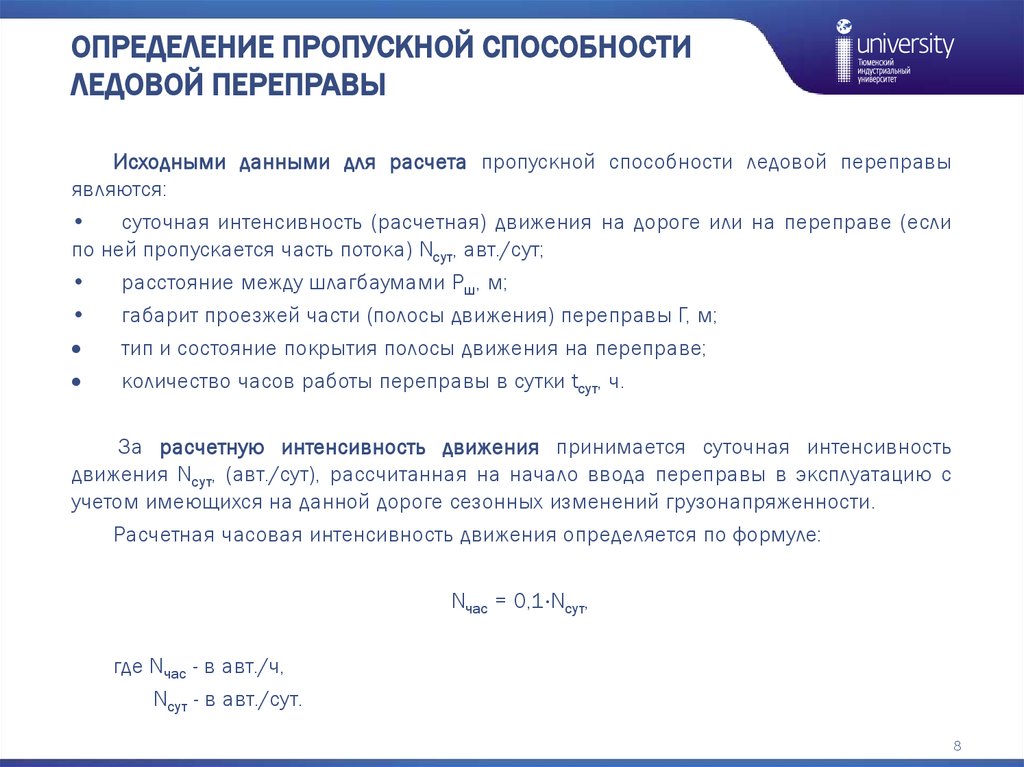 8. ОПРЕДЕЛЕНИЕ ПРОПУСКНОЙ СПОСОБНОСТИ ЛЕДОВОЙ ПЕРЕПРАВЫ