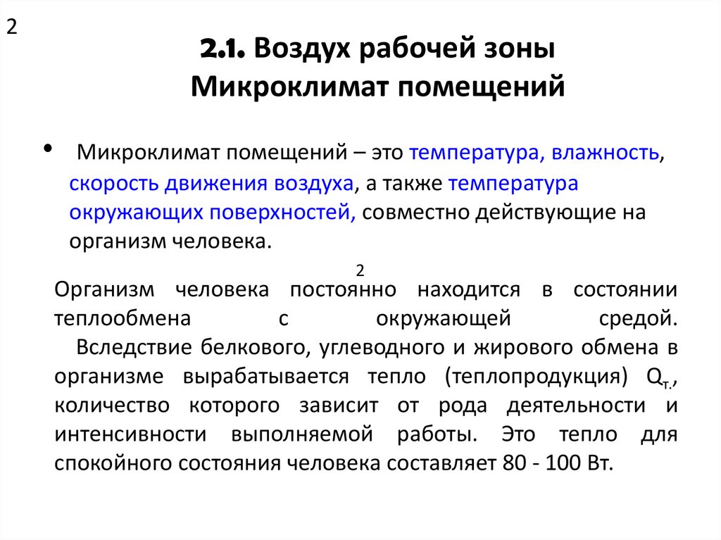 параметры микроклимата рабочей зоны помещения.