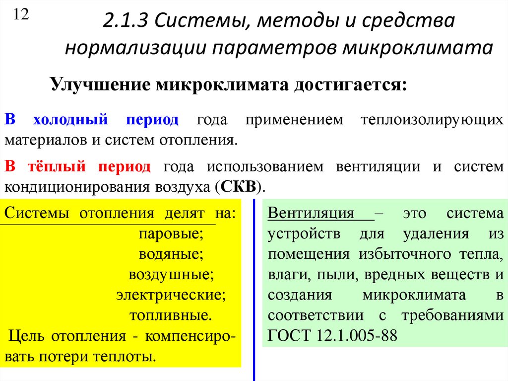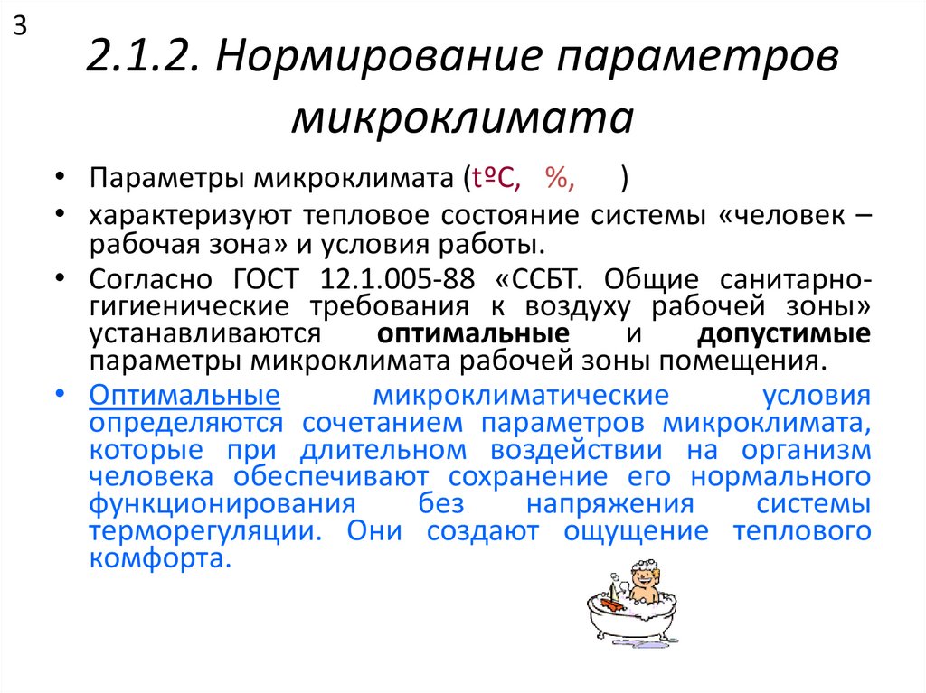 • Согласно ГОСТ 12.1.005-88 «ССБТ. Общие санитарногигиенические требования к воздуху рабочей зоны»