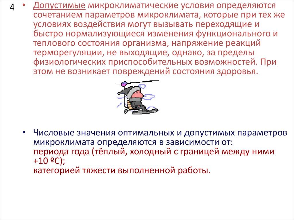 4 • Допустимые микроклиматические условия определяютсясочетанием параметров микроклимата, которые при тех же