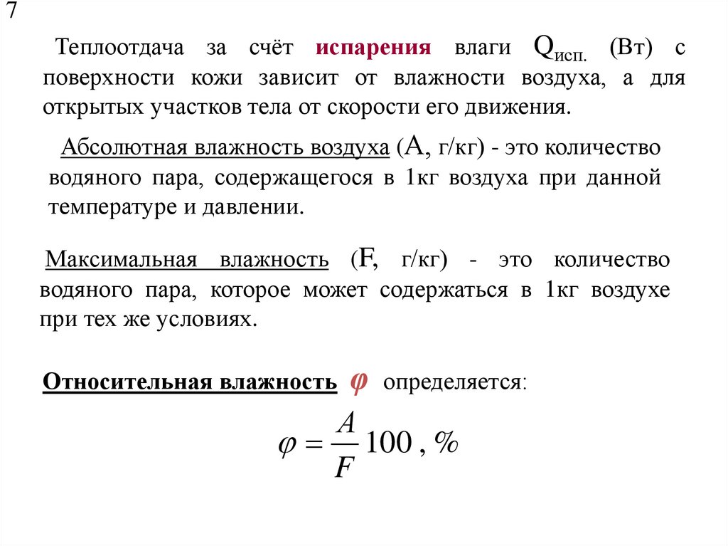 поверхности кожи зависит от влажности воздуха, а для