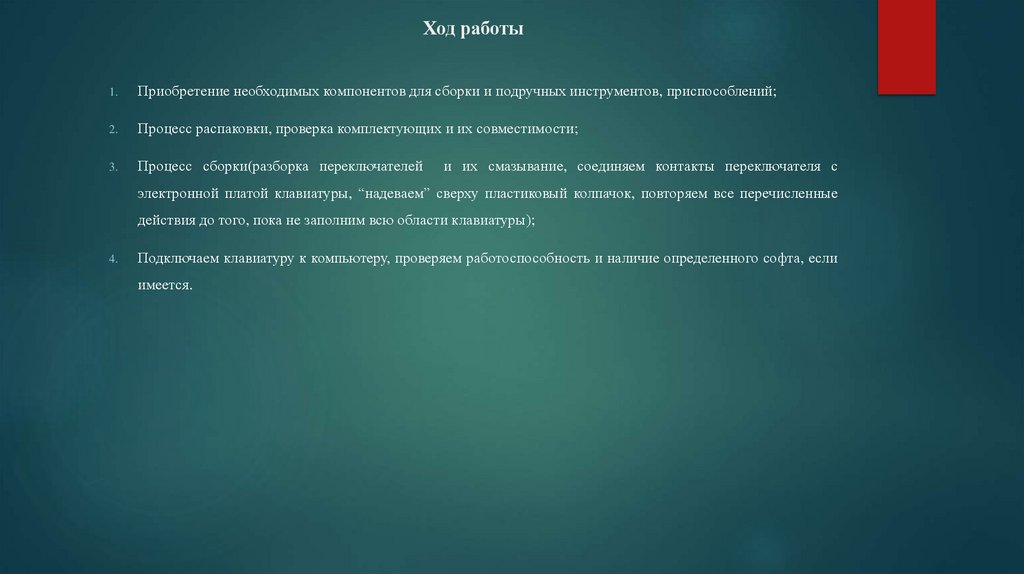 электронной платой клавиатуры, “надеваем” сверху пластиковый колпачок, повторяем все перечисленные