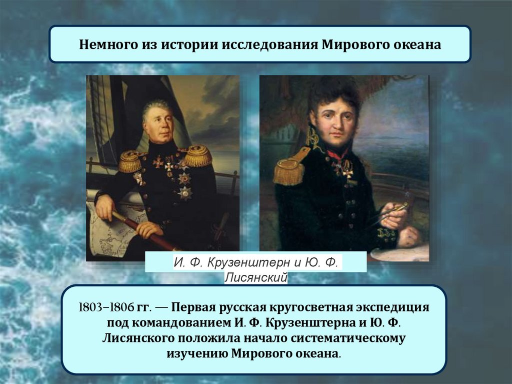 Немного из истории исследования Мирового океанаИ. Ф. Крузенштерн и Ю. Ф.