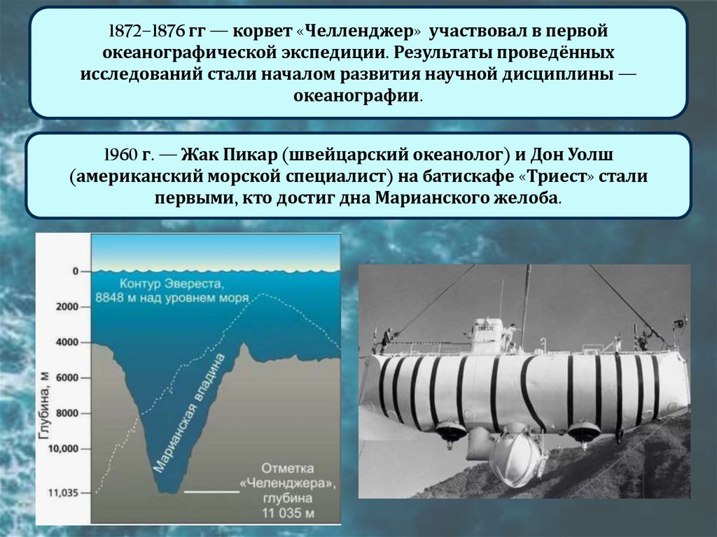 1872–1876 гг — корвет «Челленджер» участвовал в первойокеанографической экспедиции. Результаты проведённых