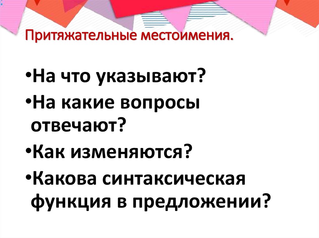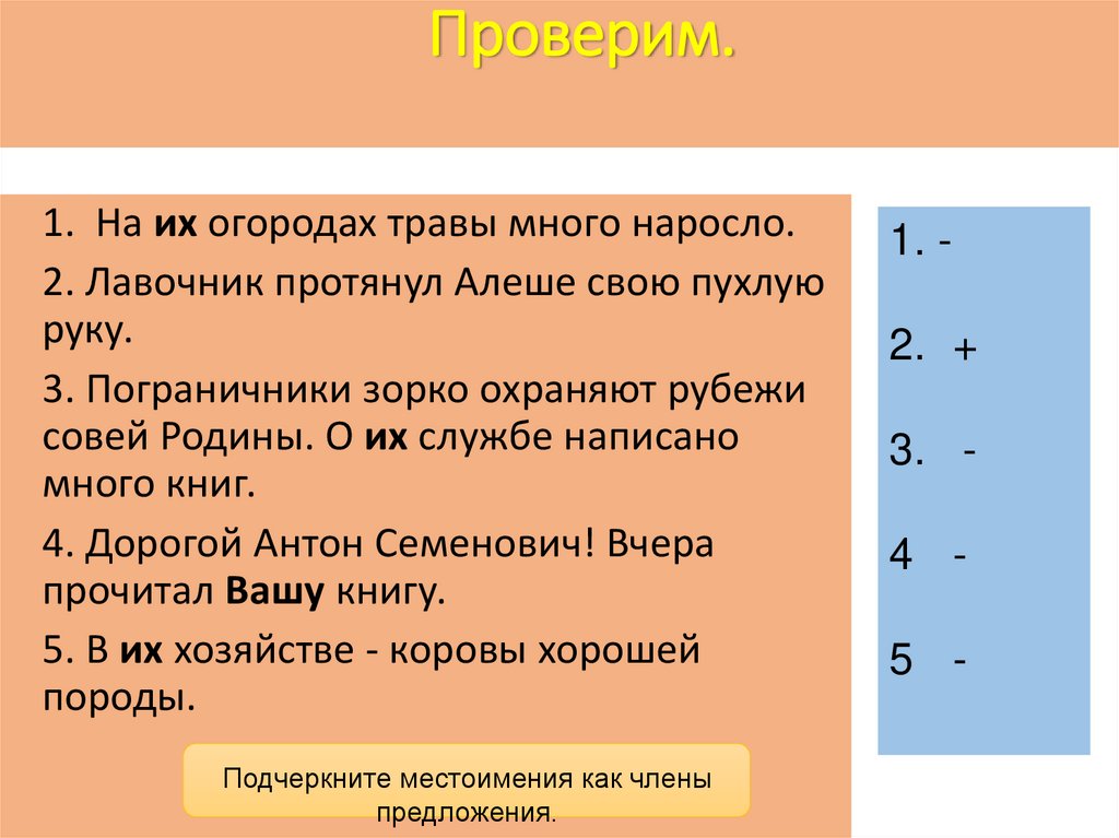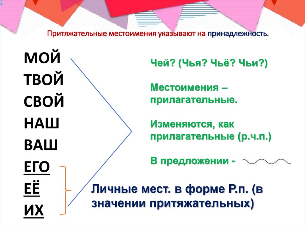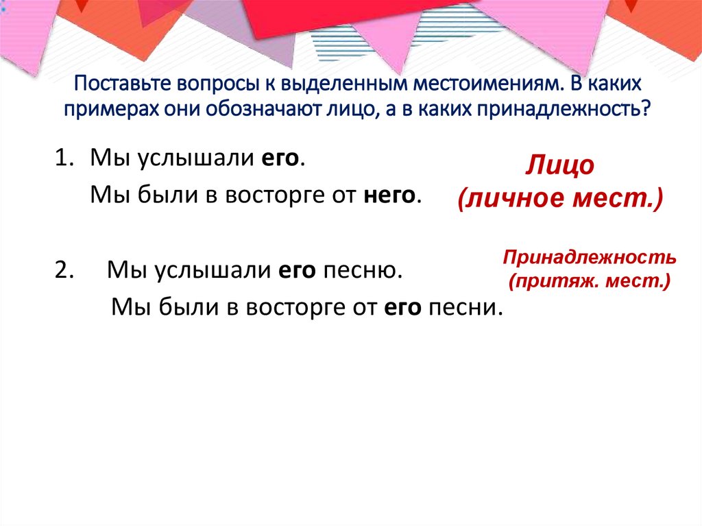13. Поставьте вопросы к выделенным местоимениям. В каких примерах они обозначают лицо, а в каких принадлежность?
