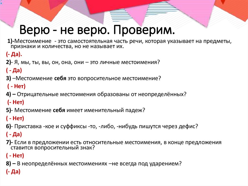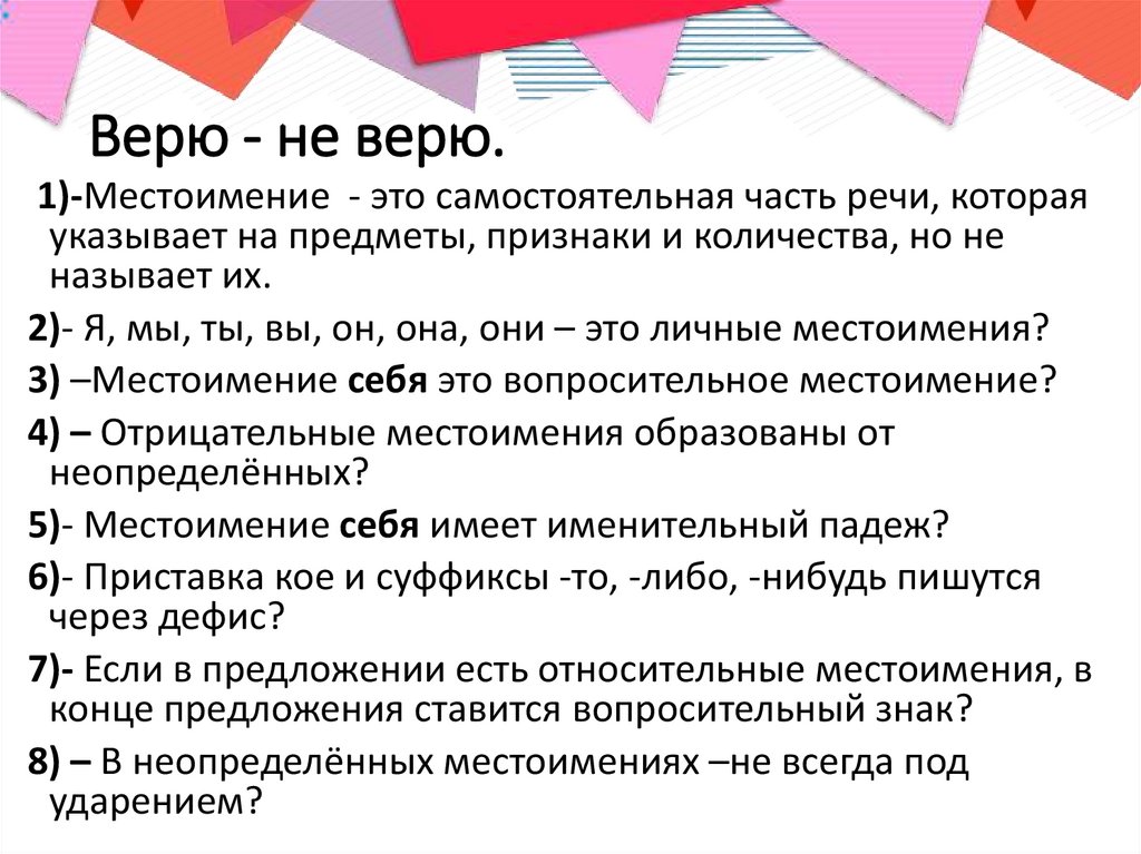 1)-Местоимение - это самостоятельная часть речи, котораяуказывает на предметы, признаки и количества, но не