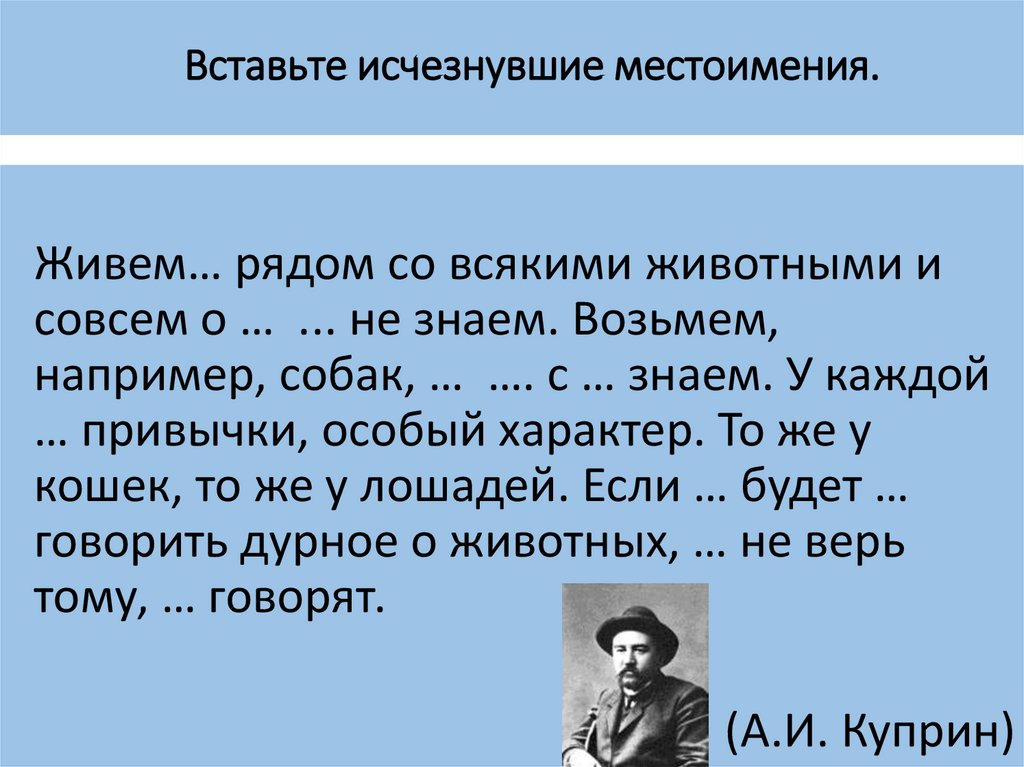 Живем… рядом со всякими животными исовсем о … ... не знаем. Возьмем,
