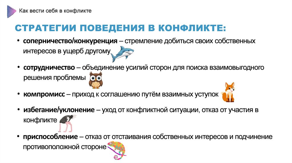 Как вести себя в конфликтеСТРАТЕГИИ ПОВЕДЕНИЯ В КОНФЛИКТЕ: