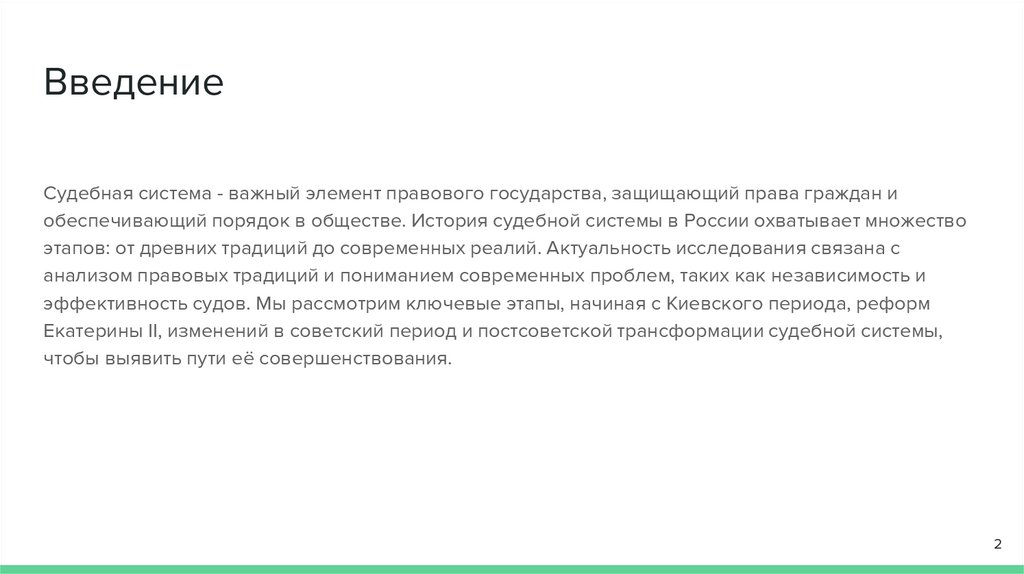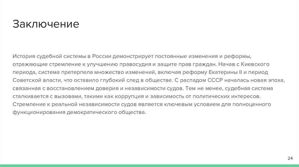 ЗаключениеИстория судебной системы в России демонстрирует постоянные изменения и реформы,