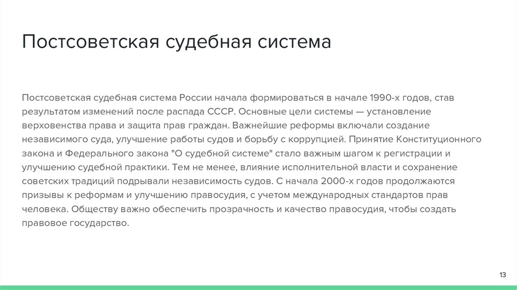 Постсоветская судебная системаПостсоветская судебная система России начала формироваться в начале 1990-х годов, став