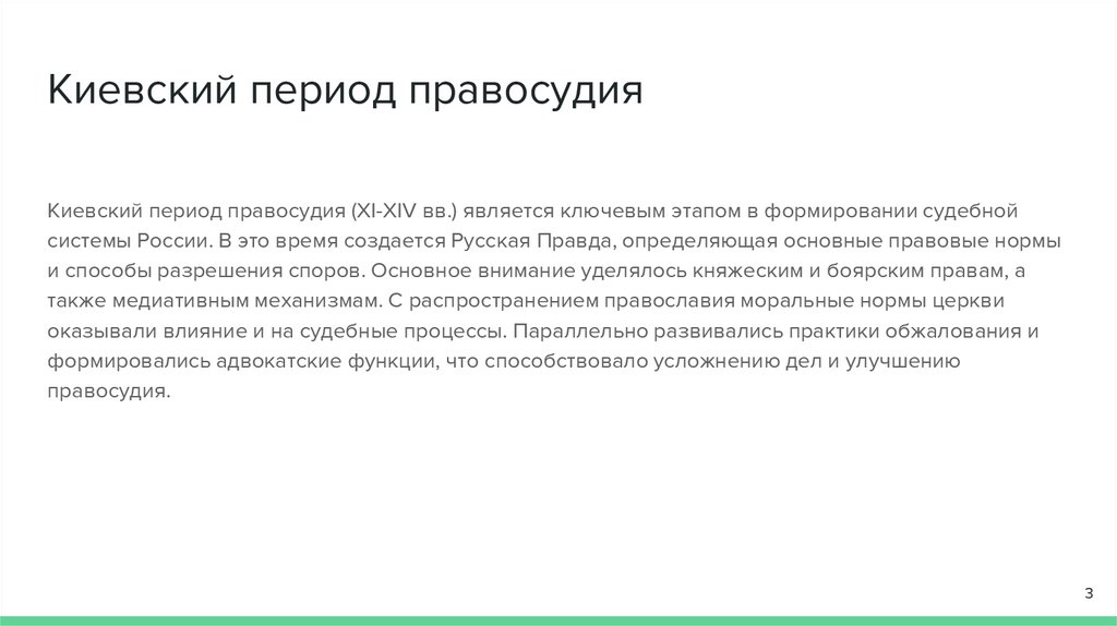 Киевский период правосудияКиевский период правосудия (XI-XIV вв.) является ключевым этапом в формировании судебной
