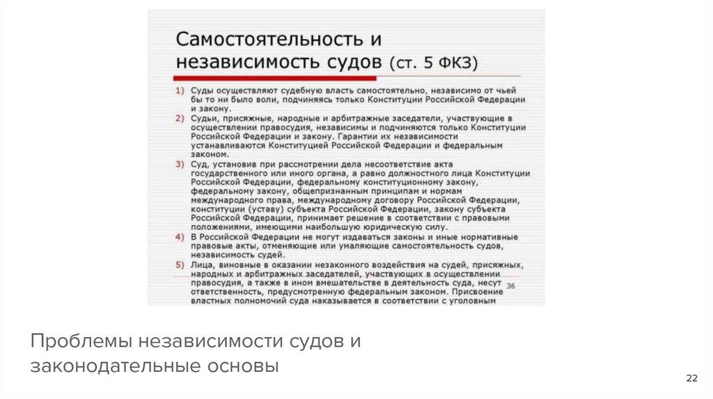 Проблемы независимости судов изаконодательные основы