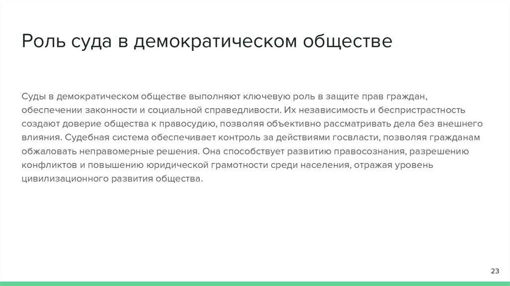 Роль суда в демократическом обществеСуды в демократическом обществе выполняют ключевую роль в защите прав граждан,