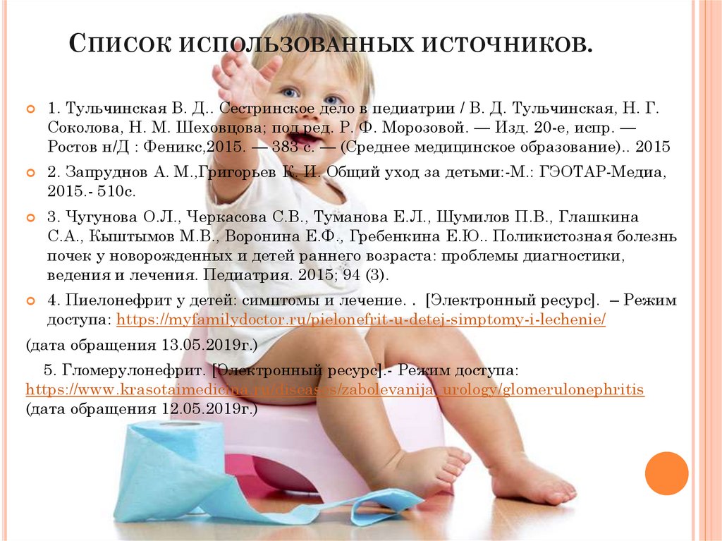 СПИСОК ИСПОЛЬЗОВАННЫХ ИСТОЧНИКОВ.1. Тульчинская В. Д.. Сестринское дело в педиатрии / В. Д. Тульчинская, Н. Г.