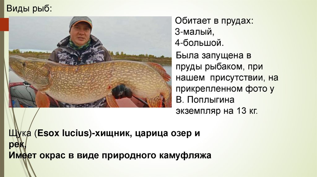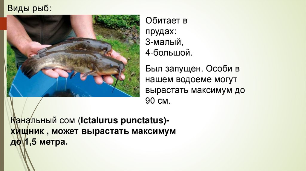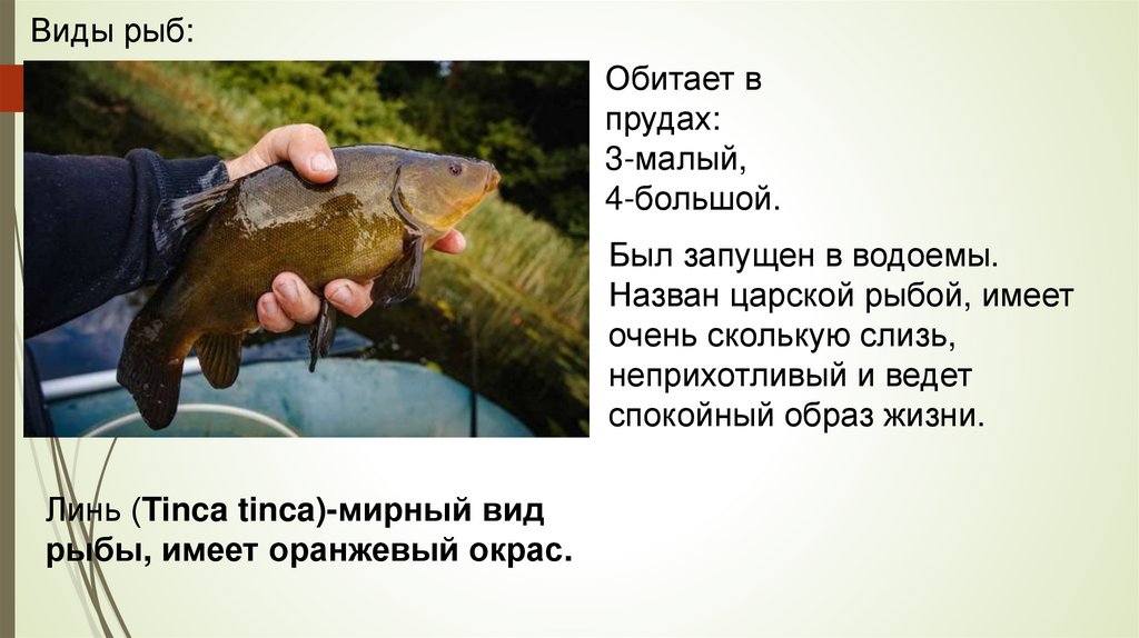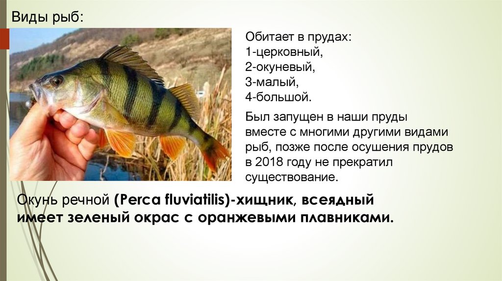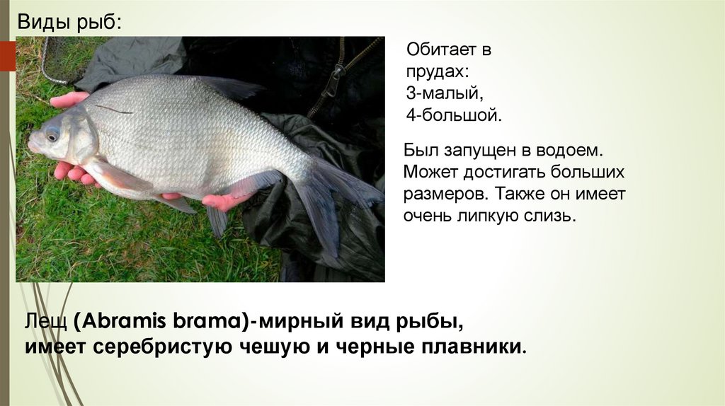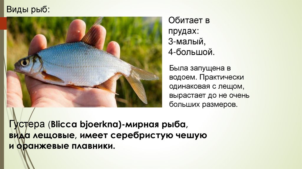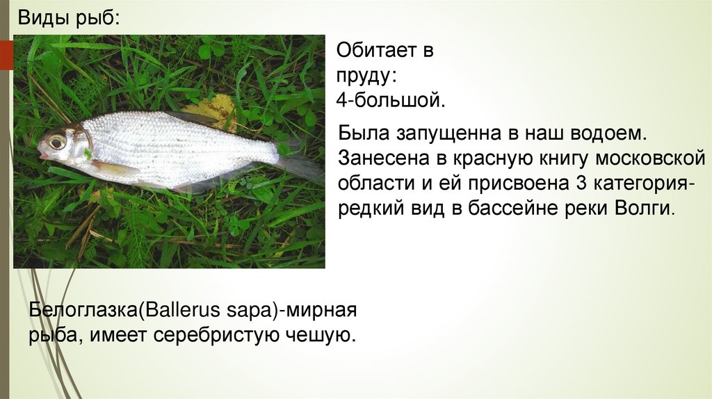 Виды рыб:Обитает в прудах: