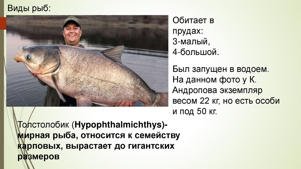 Толстолобик (Hypophthalmichthys)мирная рыба, относится к семейству