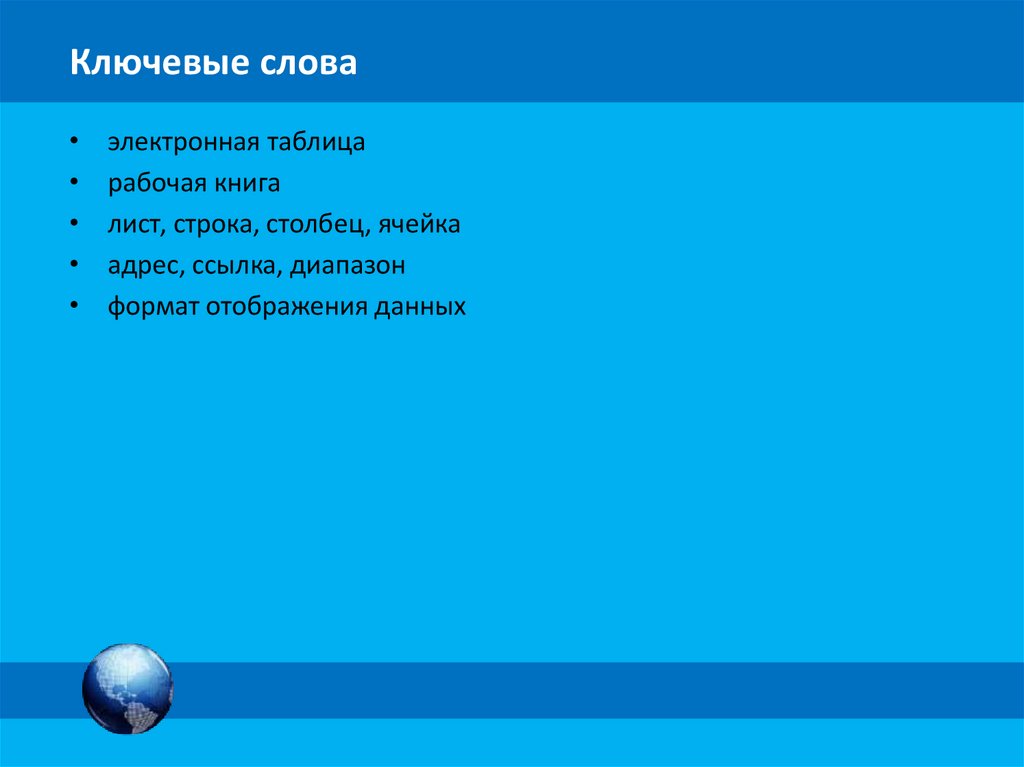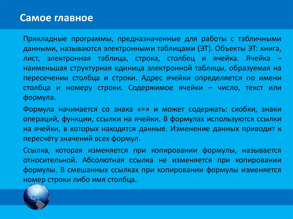 Обработка информации в электронных таблицах. Табличный процессор. Основные сведения (11 класс)