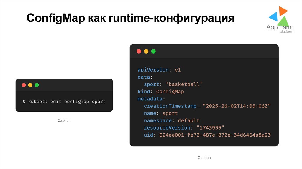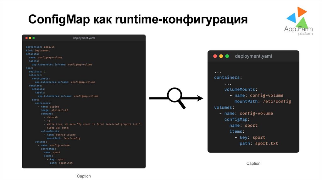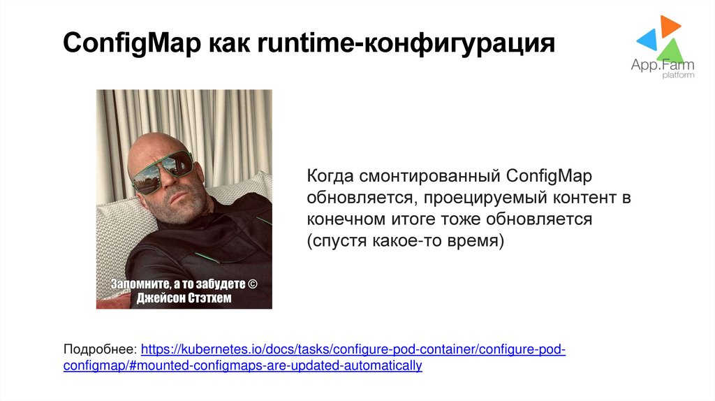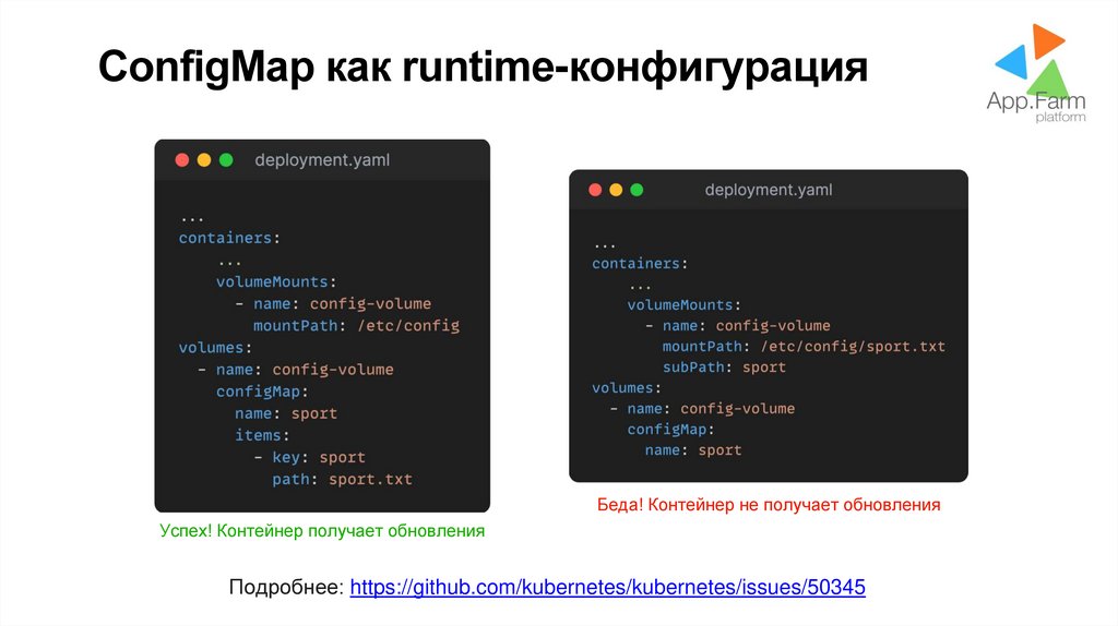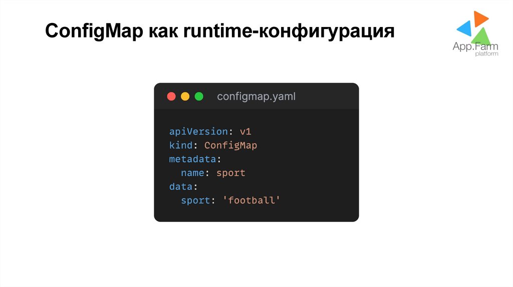 ConfigMap как runtime-конфигурацияКогда смонтированный ConfigMap