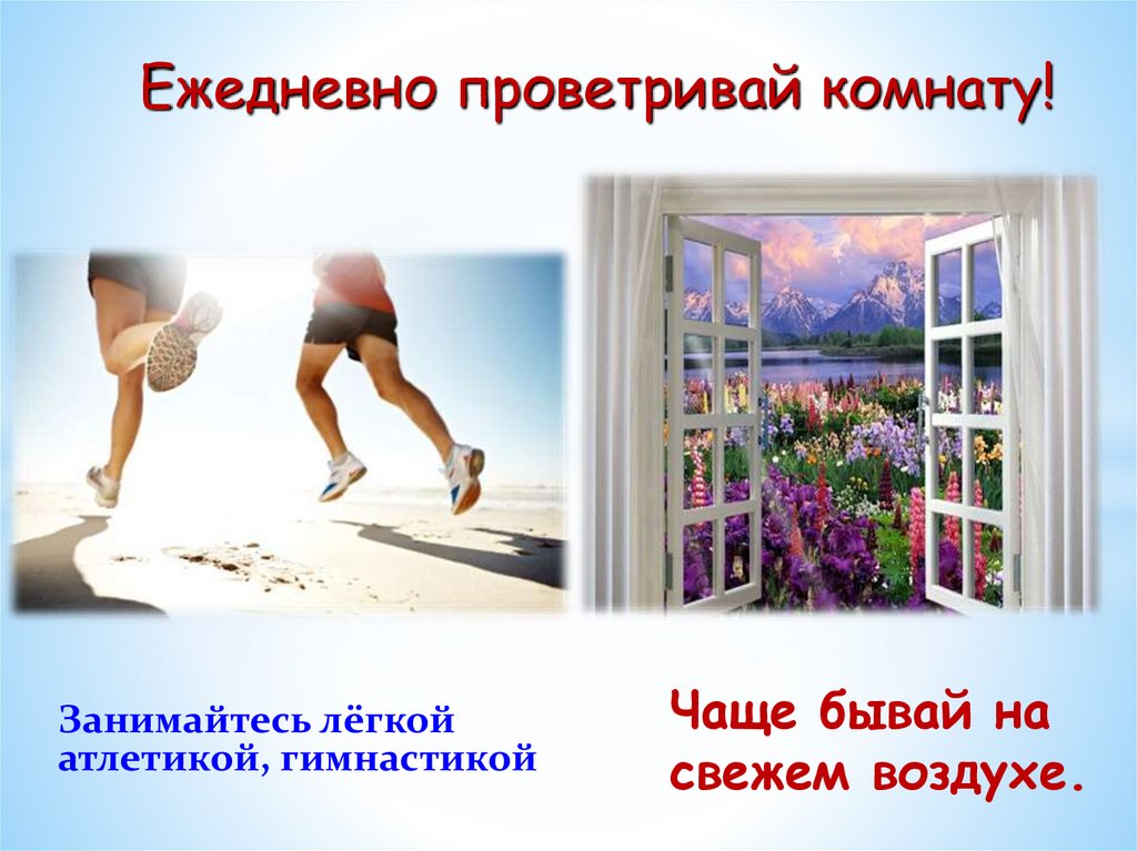 Ежедневно проветривай комнату!Занимайтесь лёгкой