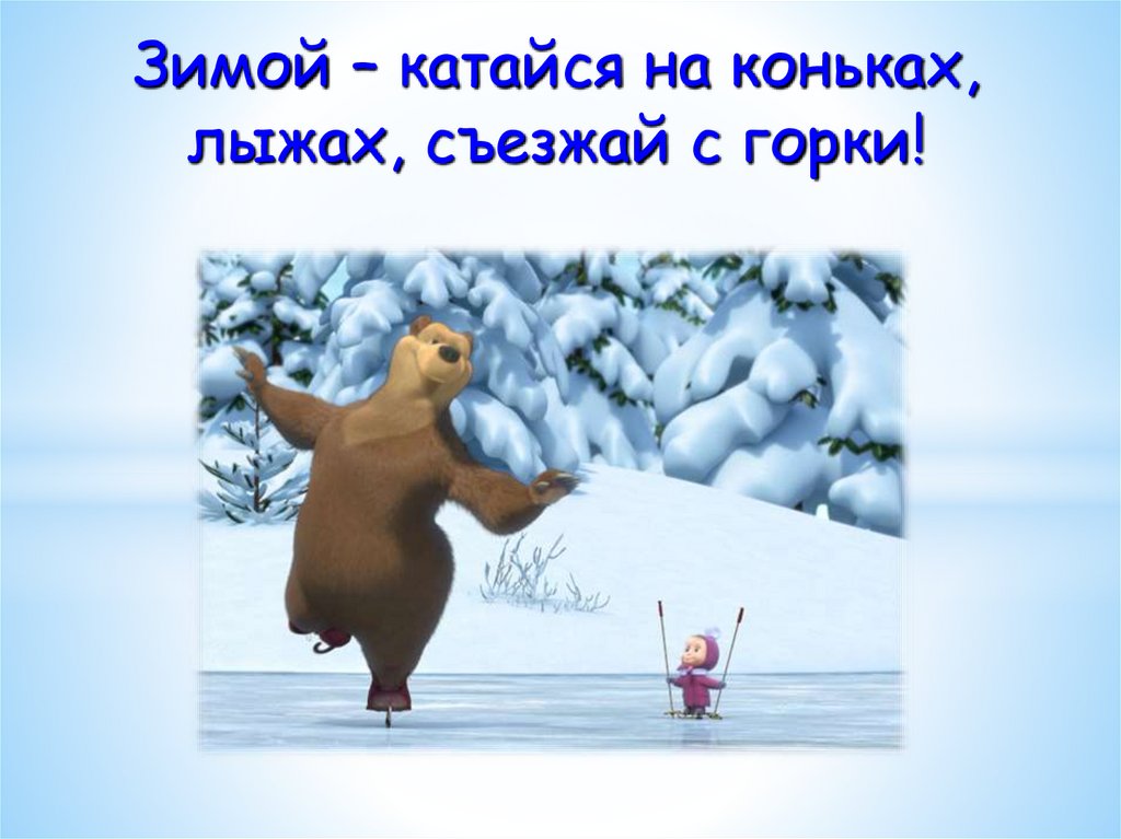 Зимой – катайся на коньках,лыжах, съезжай с горки!