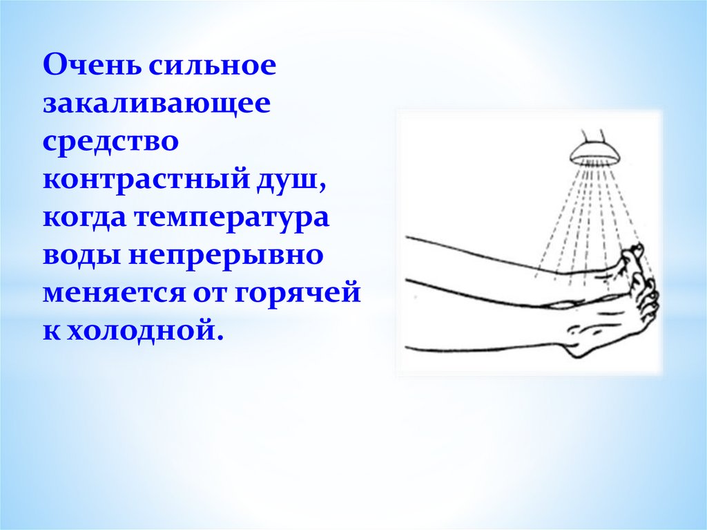 Закаливание оказывает общеукрепляющеедействие, улучшает кровообращение,